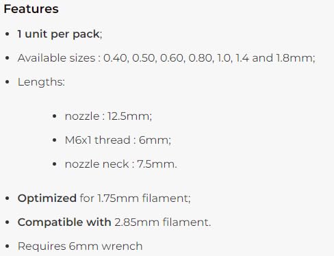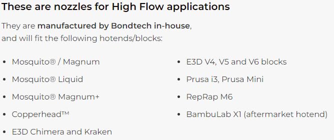 Bondtech CHT Mosquito/E3D V6 M6 3D Printer High Flow Nozzle - Single Pack