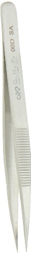 Hakko CHP 00D-SA Fine-Tip Tweezers, Straight, Serrated Fine-Point Tips, Non-Magnetic Stainless Steel, Corrosion-Resistant, Serrated Grip, 4-1/2" Length