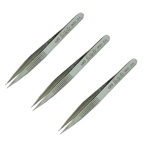 Hakko CHP 00D-SA Fine-Tip Tweezers, Straight, Serrated Fine-Point Tips, Non-Magnetic Stainless Steel, Corrosion-Resistant, Serrated Grip, 4-1/2" Length (3 Pack)