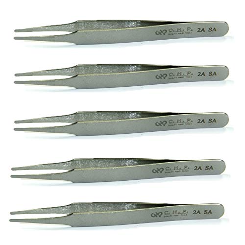 Hakko CHP 2A-SA Stainless Steel Non-Magnetic Precision Tweezers with Rounded Tips, Thin Tapered Tines, 4-3/4" Length (5 Pack)