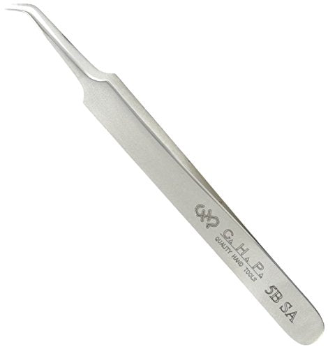 Hakko CHP 5B-SA Stainless Steel Non-Magnetic Precision Tweezers with Very-Fine Point Thin-Tapered Bent Sharp Tips, 4-1/4" Length