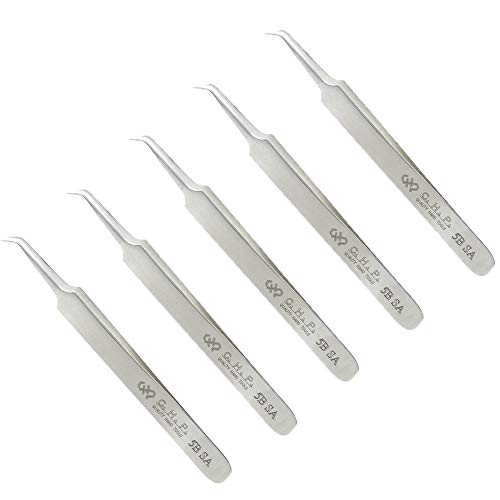 Hakko CHP 5B-SA Stainless Steel Non-Magnetic Precision Tweezers with Very-Fine Point Thin-Tapered Bent Sharp Tips, 4-1/4" Length (5 Pack)